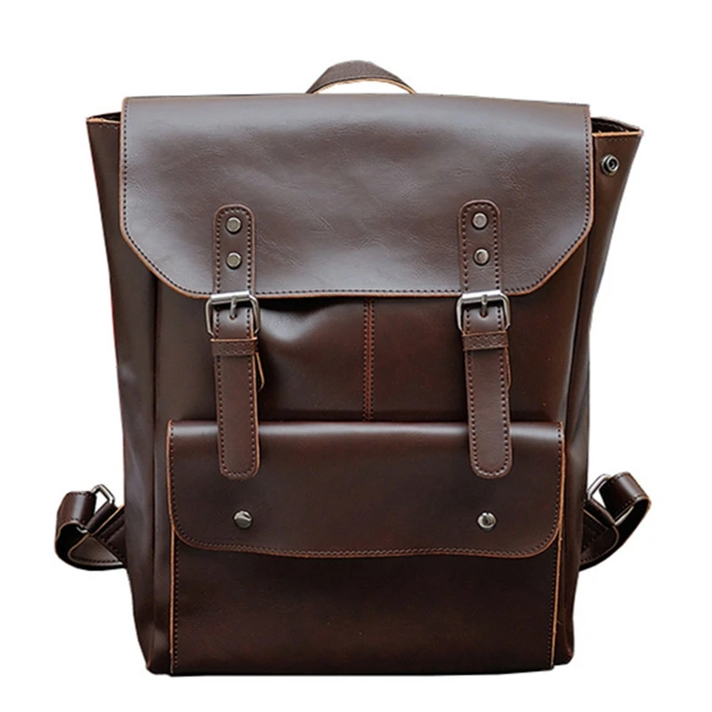 Multifunction Men Backpack Crazy Horse Leather Men School Bag Vintage Backpack for Teenage Boys Sch