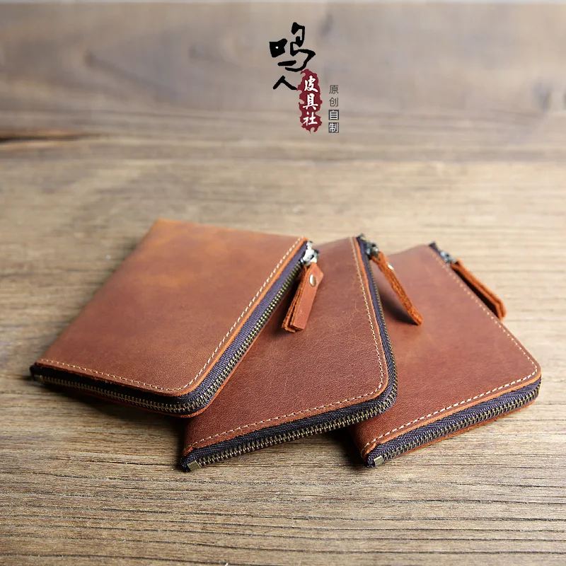 MEN'S Wallet Handmade Genuine Leather Short Vintage Horse Leather Zipper Wallet Full-grain Leather