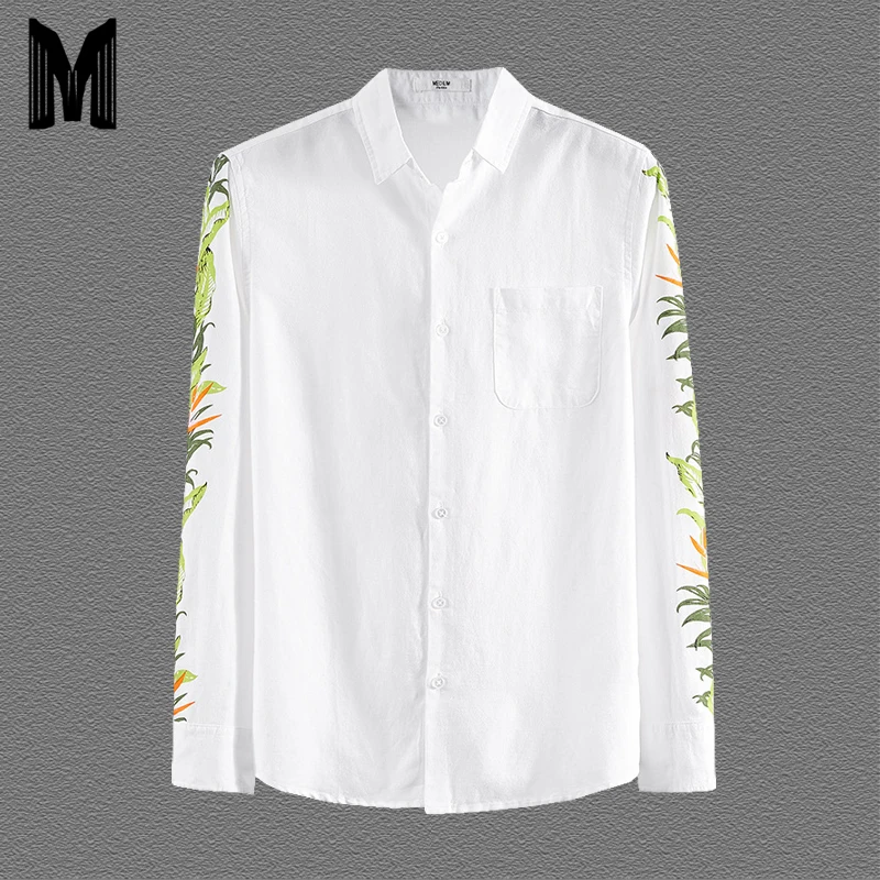 2019 Spring Summer New Shirts Men Fashion Cotton Linen Long Sleeve Embroidery Plus Size Shirt Y1670