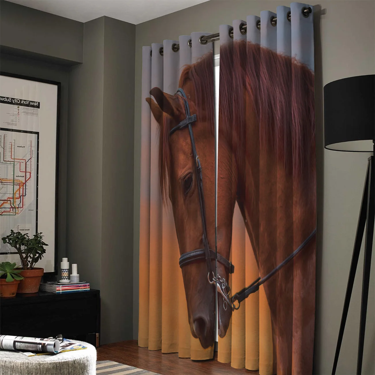 A Close -Up Reddish-Brown Horse Dusk Blackout Window Curtains Dark Curtain Rod Living Room Indoor D