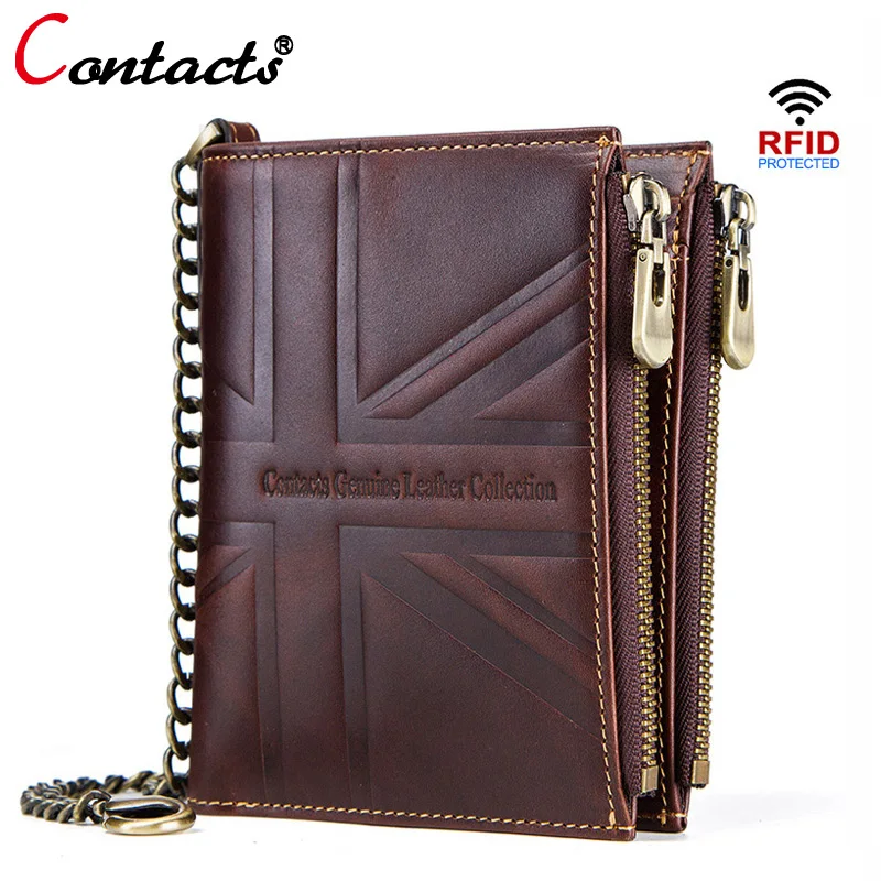 CONTACT'S crazy horse genuine leather men wallets male wallet vintage coin purse men short walet ch
