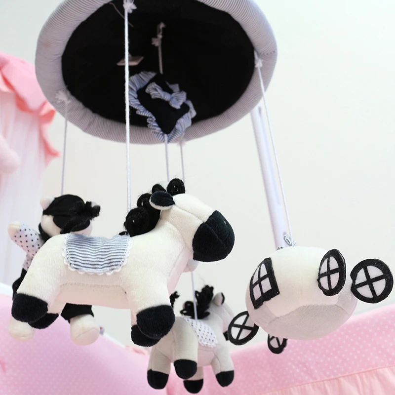 Baby Rattles Early Education Cute Horse Bear Hanging Baby Crib Mobile Bed Bell Toy Rotary Movement